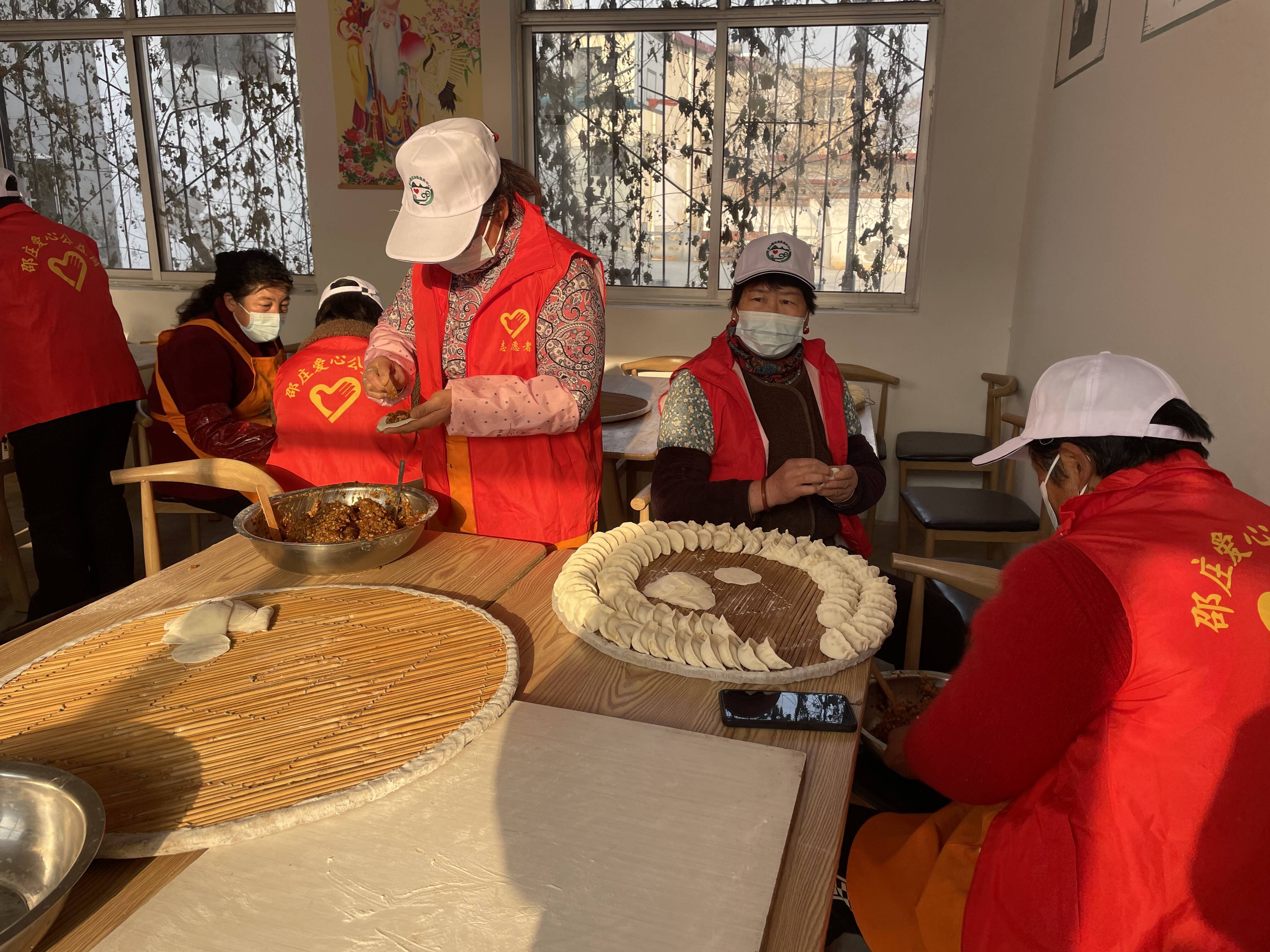 与此同时,村幸福院内正升腾着温暖的白雾。志愿者们分工协作,揉面、擀皮、包馅,动作娴熟,配合默契。不一会儿,一个个饱满的饺子被整齐码放在盖帘上。锅中水沸,饺子下锅,翻滚间香气四溢,驱散了冬日的清冷。临近正午,志愿者将一碗碗热气腾腾的饺子端到老人面前;吃着香喷喷的饺子,老人们赞不绝口。窗外冬意正浓,屋内却暖如春初。